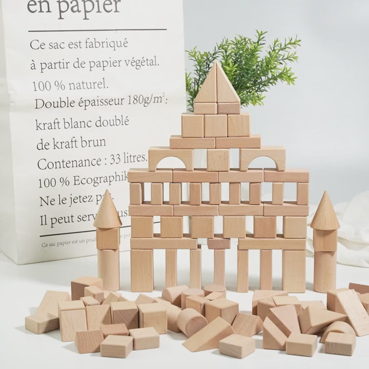 Montessori Natural Wood Building Blocks – 100-Piece Set Educational Toys