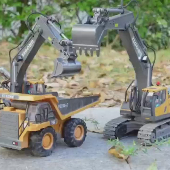 Unleash the power of construction with the A258-19 Remote Control Excavator, Dump Truck, and Bulldozer! This high-performance RC vehicle is packed with exciting features, making it a must-have for kids and collectors alike.